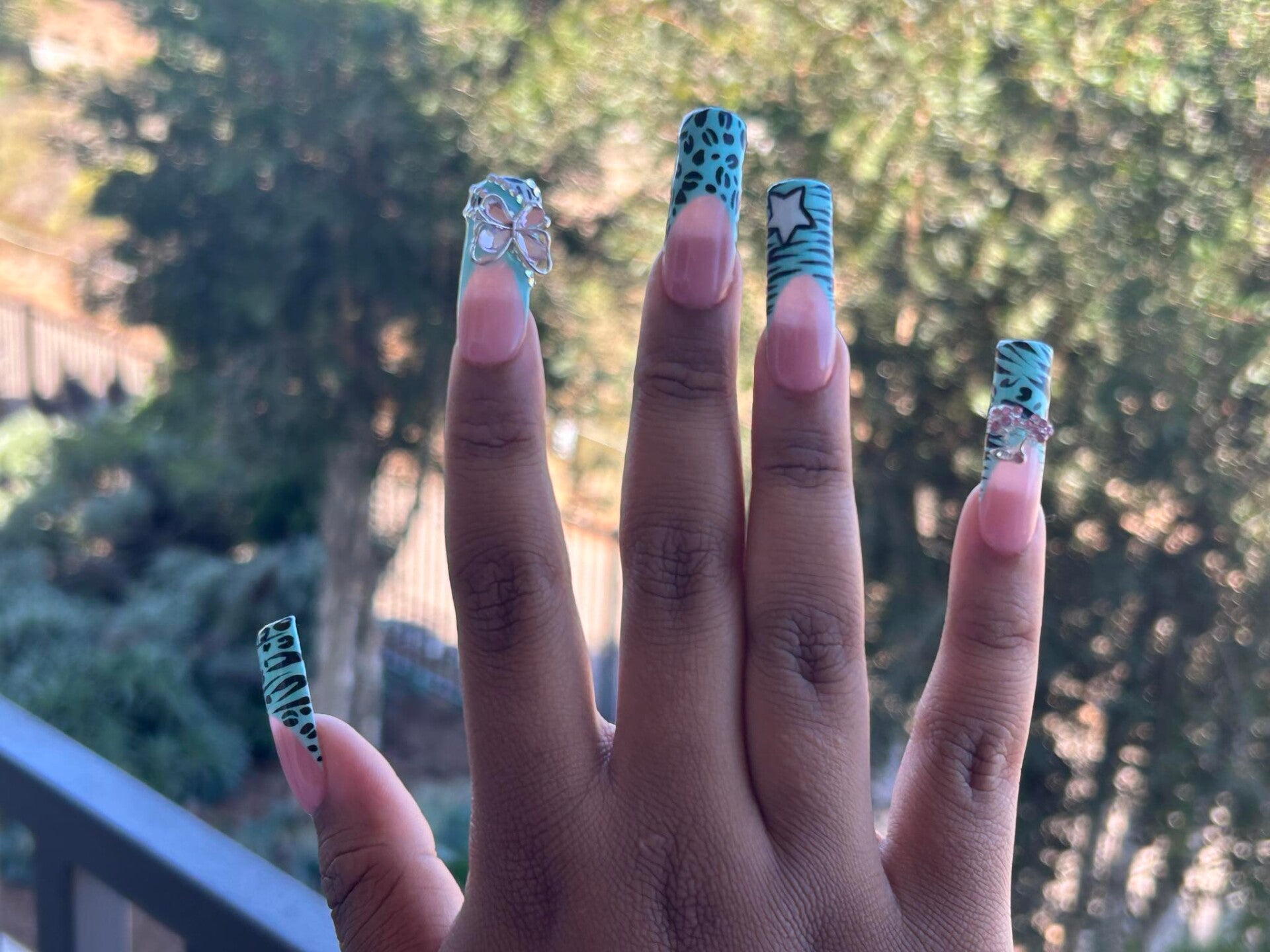 Step into your bold era with our Wild & Glam press-on set 💅✨. Featuring a fierce mix of zebra & leopard print in aqua tones, paired with luxe 3D charms and rhinestone accents, this set was made for babes who love to stand out. Perfect for nights out, selfies that pop, or anytime you want to feel unapologetically glam